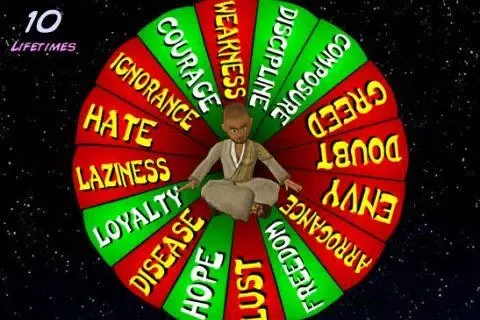 Reach out with your touch to interact with these swirling traits. By guiding them towards the positive, you'll cleanse your soul, step by step. The ultimate goal is to achieve Moksha, a state of spiritual liberation that marks the culmination of your purification journey. However, as you progress, the pace of the wheel of life accelerates, making it increasingly difficult to maintain your focus and balance.