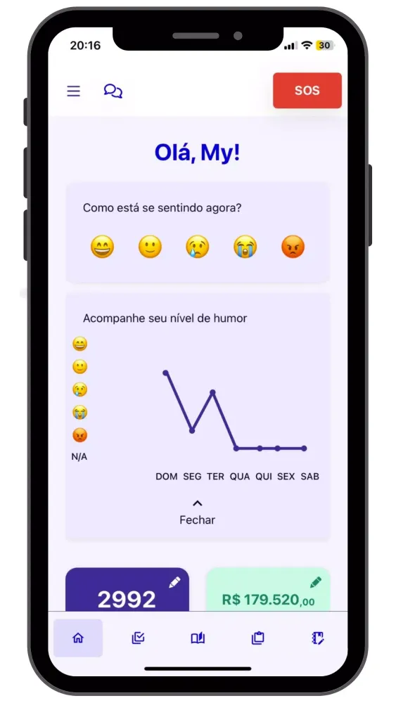 Track your emotional states daily and visualize your mood swings over the week. Understanding your emotional patterns can be crucial for managing your mental health.