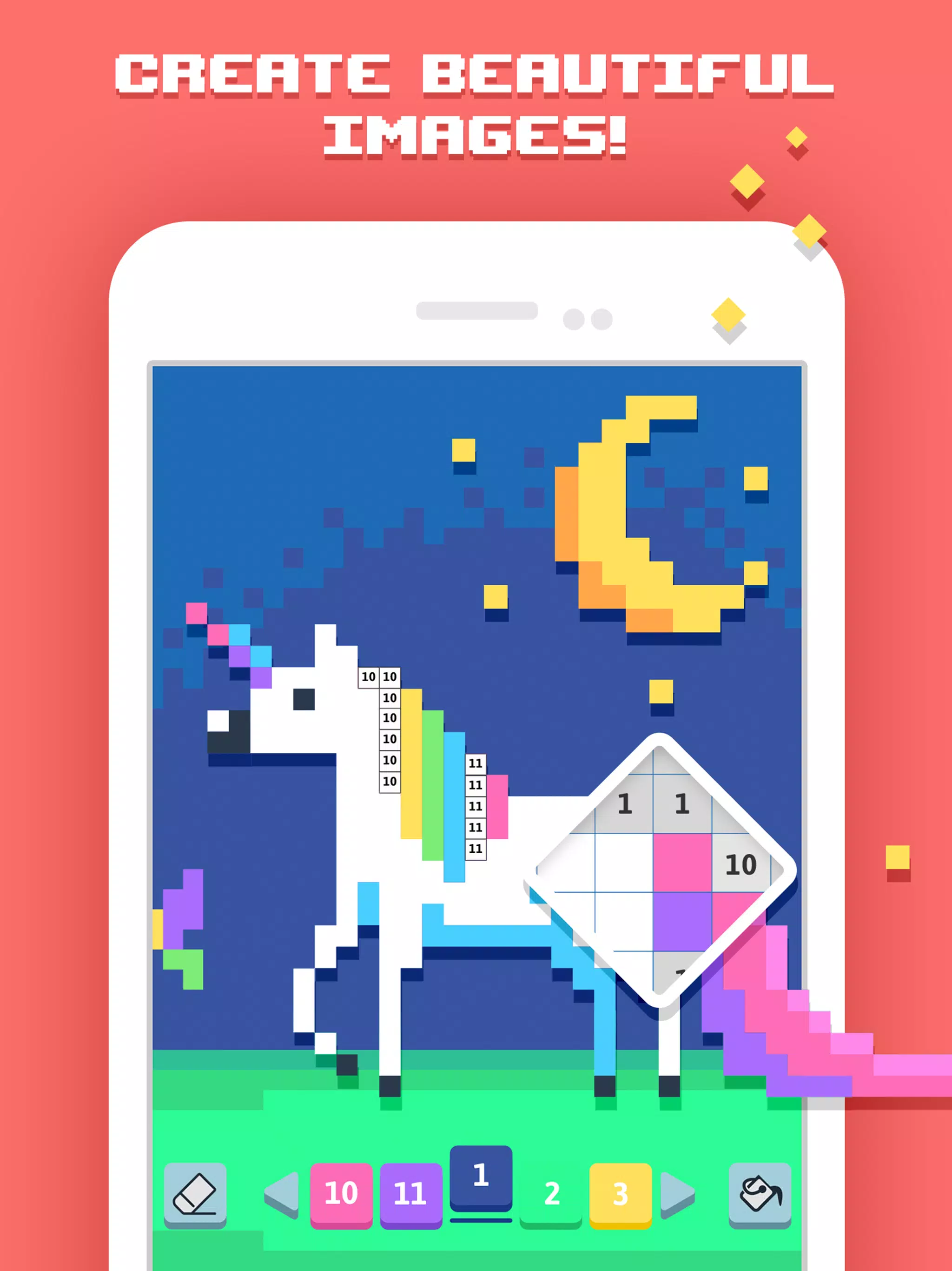 Transform numbers into colorful pictures and discover your inner artist! Pixelicious is a delightful application designed to bring out the creative genius in everyone. Whether you're a seasoned artist or someone who's never picked up a brush before, this app offers an incredibly relaxing cross-stitch coloring experience that will captivate your imagination.