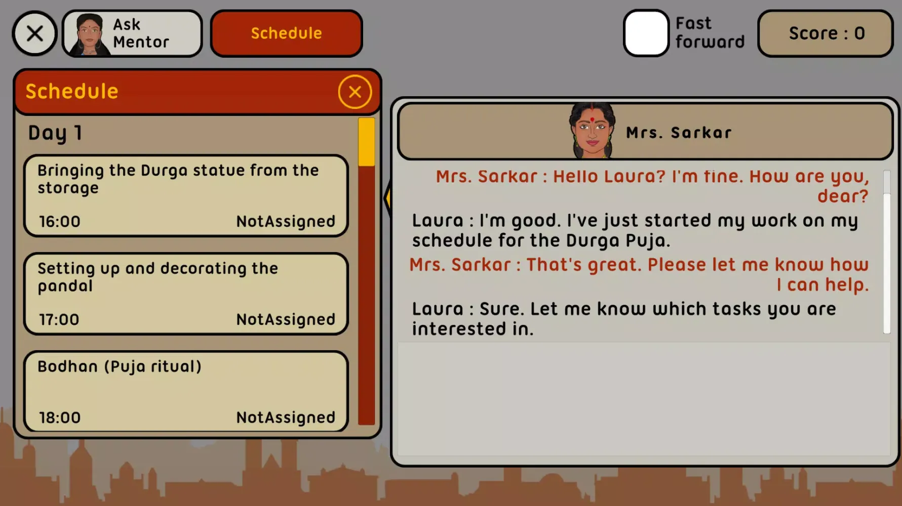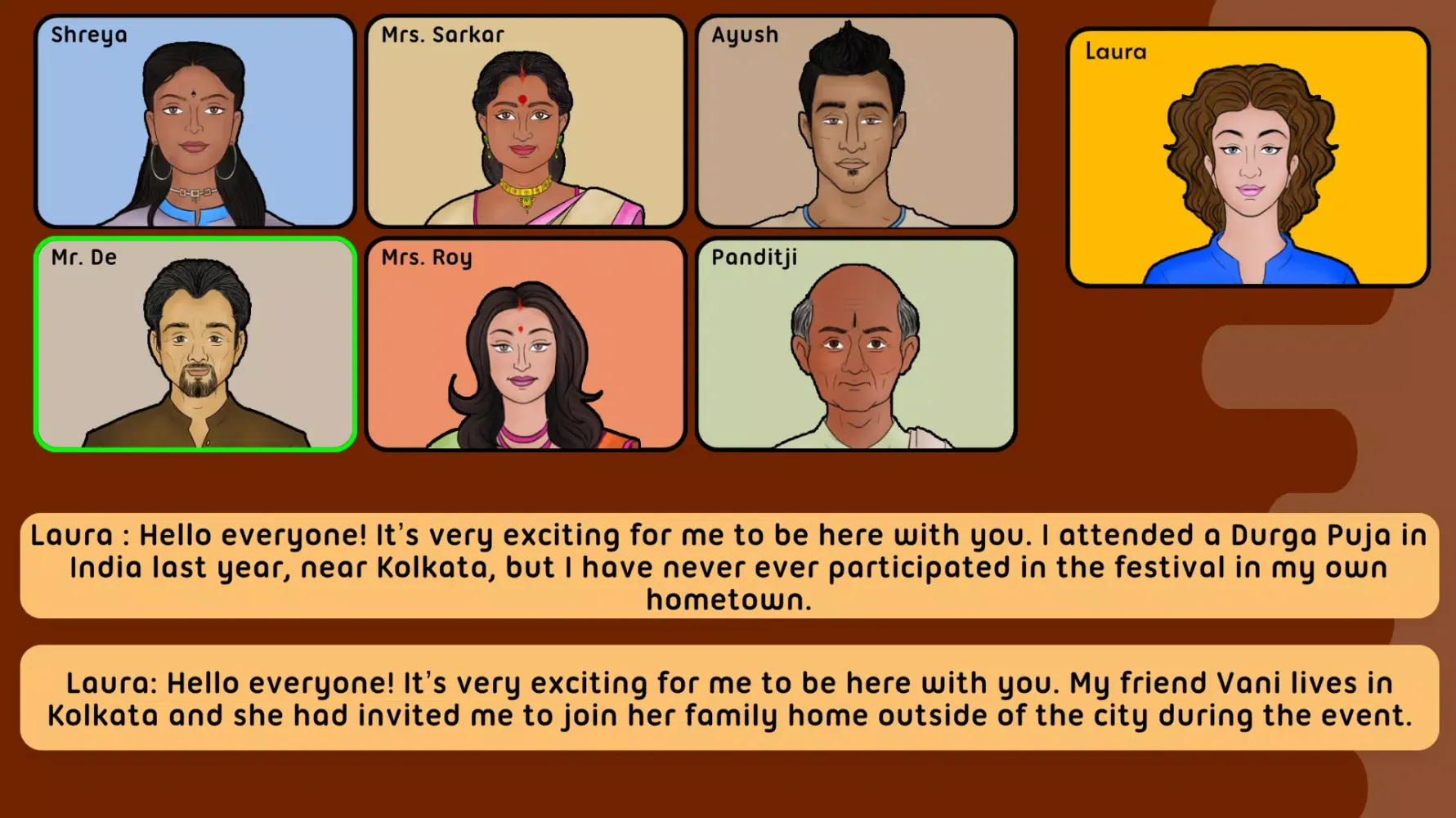 Set against the backdrop of Helsinki, Finland—a city renowned for its multicultural fabric—the game transports players to an exemplary global Indian community within the Indian diaspora. Here, players assume the role of Laura, a young professional actively involved in organizing and celebrating a Durga Puja event alongside a local Indian community. Through this immersive experience, players embark on a transformative journey that mirrors real-life challenges and triumphs faced during festival planning and execution.