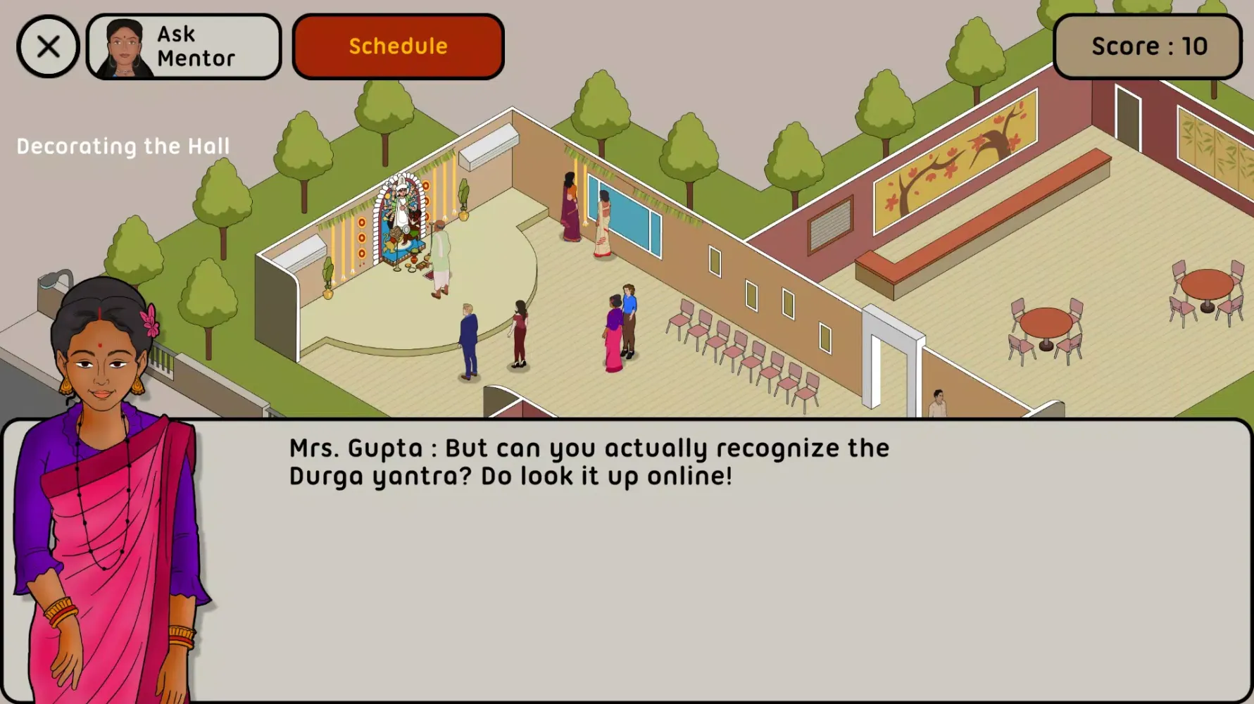 Beyond logistics, the game encourages meaningful interactions with members of the community, fostering discussions about the festival’s significance in different parts of the world. These conversations deepen players' appreciation for the shared values and unique adaptations of Durga Puja across cultures. Additionally, the game features a library stocked with resources for further exploration, allowing curious minds to delve deeper into the cultural and historical dimensions of the festival.