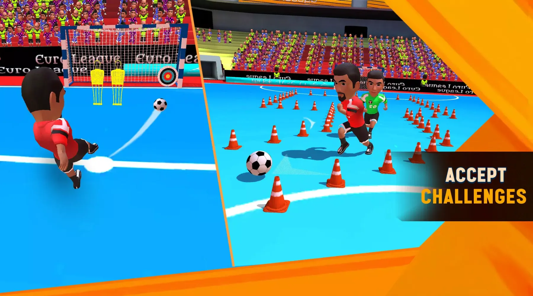Win challenges, earn coins, and upgrade your team in Target or Football Kick game modes. Futsal offers ease of play and endless competitive football entertainment. You can even play and manage your team of eleven offline on your tablet, making it a small yet big entertainment package. Enjoy the mini cartoon soccer game experience with both online and offline modes.