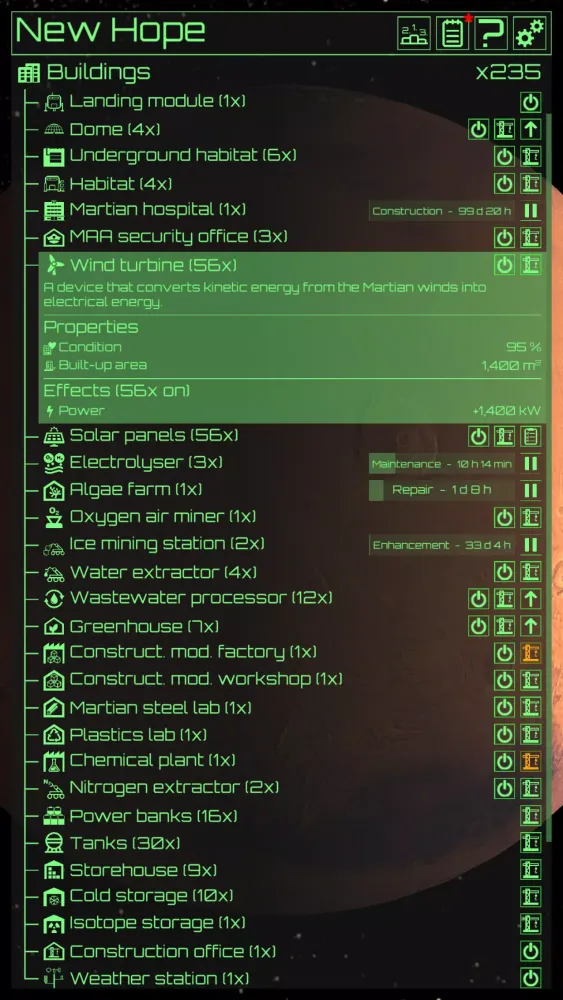 - Scientific-Oriented Building & Simulation: Engage in the process of constructing and managing a Mars settlement with a strong emphasis on scientific accuracy.