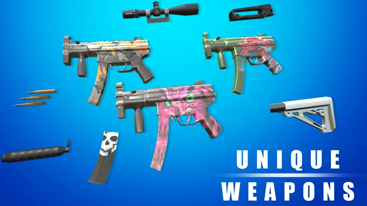 - Unique Weapons and Skins: Equip yourself with distinctive weapons and customize your look.