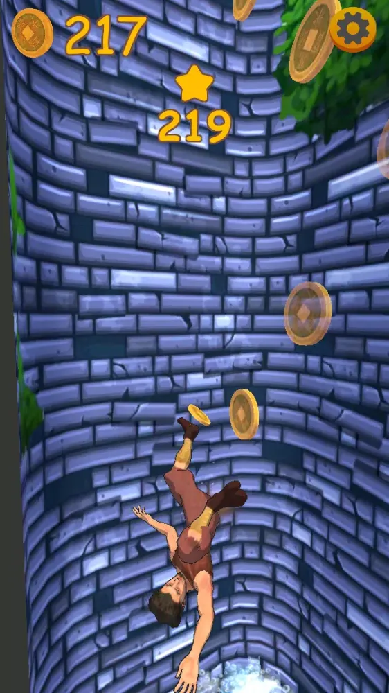 You slept peacefully at the bottom of a deep well until it started filling with water. Now, your only chance of survival is to climb up the walls, jump from one wall to another, and collect as many coins as possible. Your goal is to get the highest score and make it into the Hall of Fame.
