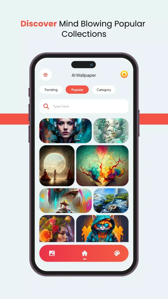 Explore pre-generated AI art collections categorized by theme, color, or style. Discover hidden gems and find the perfect wallpaper to match your personality.