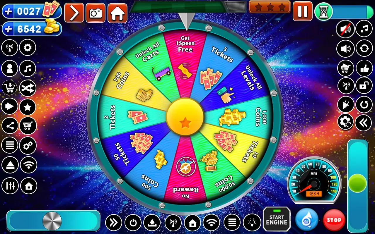 The game features two captivating themes: Desert Day and Spooky Night. Complete each level within the specified time to earn stars. With over 15 unique roller coasters, you can choose your favorite cart. If you need more coins, watch videos, spin the wheel for a chance to win, or play daily to collect free gifts and earn big rewards.