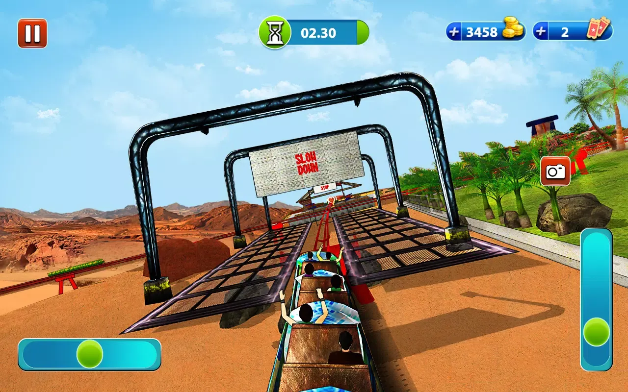Experience the thrill of roller coasters in a beautiful garden-themed park! Soar through the skies and enjoy an exhilarating ride like no other. Control the speed of your roller coaster to stay on track and avoid derailing, especially when navigating sharp turns. Safety is key; ensure you don't endanger your fellow riders.