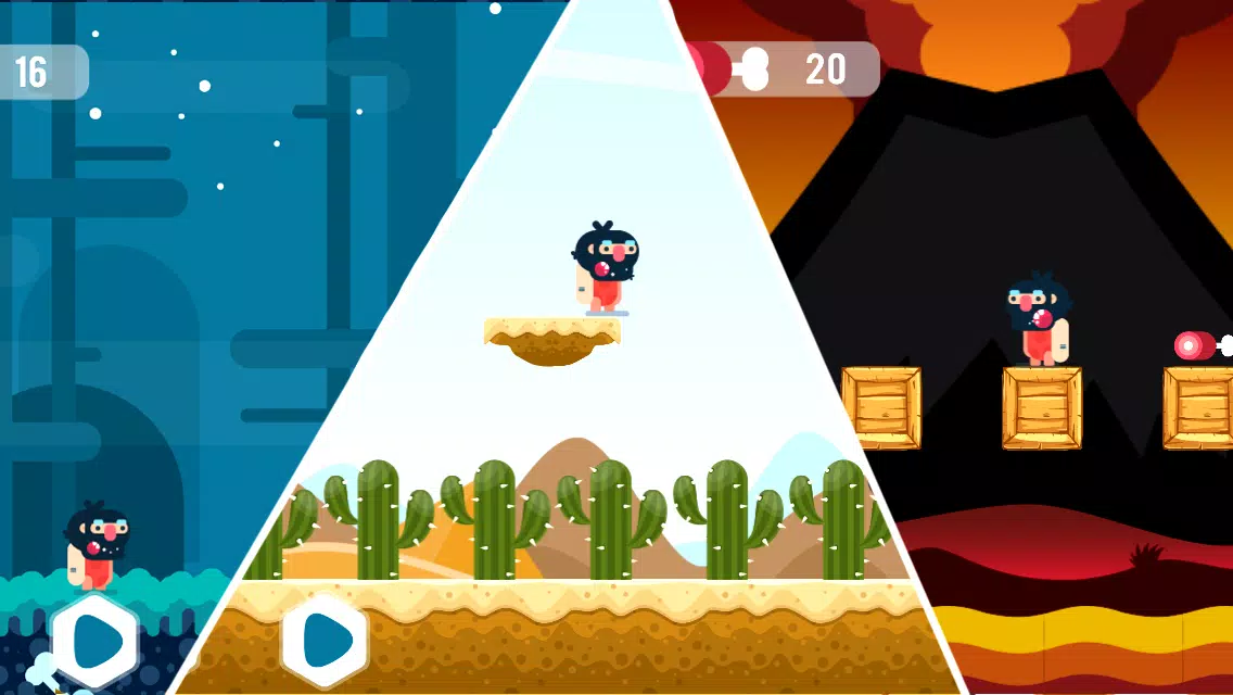 - Move Wisely: Use directional buttons to guide the caveman across platforms and obstacles.
