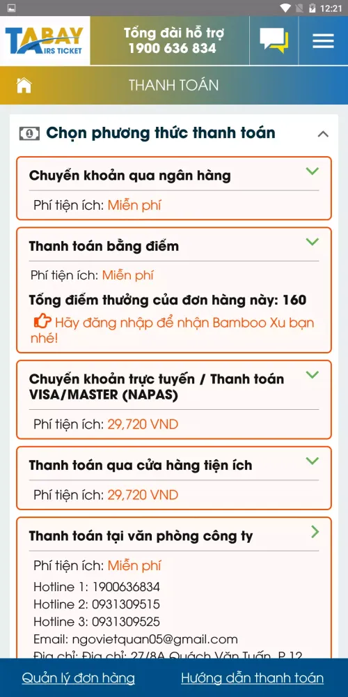 TaBay AirTicket App supports multiple payment methods, making it easy for you to complete transactions without leaving your home. Choose from bank transfers, credit cards (Visa and MasterCard), cash payments at offices, or even at thousands of convenience stores nationwide. Your convenience is our priority!
