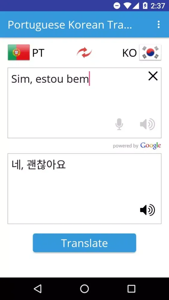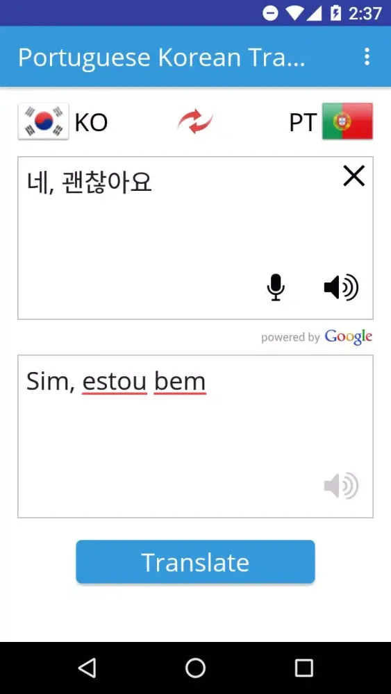One of the standout features of the Portuguese Korean Translator is its intuitive interface, which makes switching between Portuguese and Korean effortless. Users can quickly type in their desired text or even speak it aloud for real-time translation. The app is built to be user-friendly, ensuring that even those who are not tech-savvy can navigate it effortlessly.
