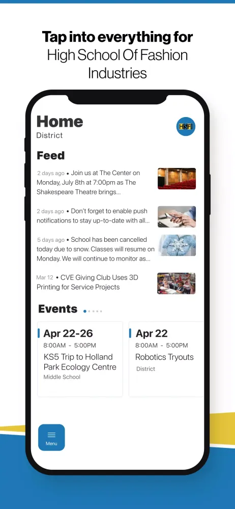 Download the HS of Fashion Industries, NYC app today and stay connected with everything happening at the school!