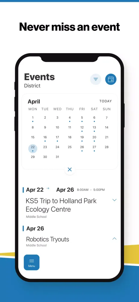 Never miss a beat with our comprehensive event section. This feature provides a detailed list of upcoming events throughout the district. Whether it's a fashion show, workshop, or any other school activity, you can easily add these events directly to your personal calendar with just one tap. Additionally, share these events with friends and family via social media or messaging apps, ensuring everyone is up-to-date on what's happening at The High School of Fashion Industries.
