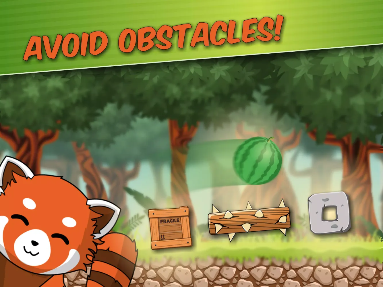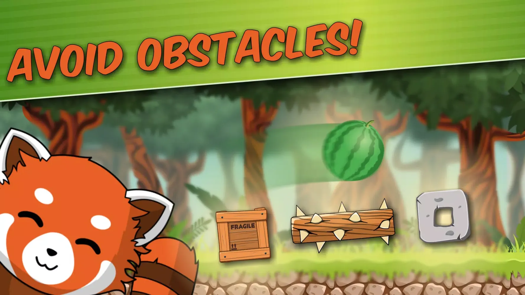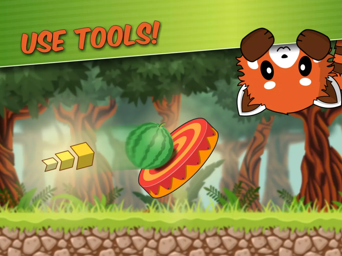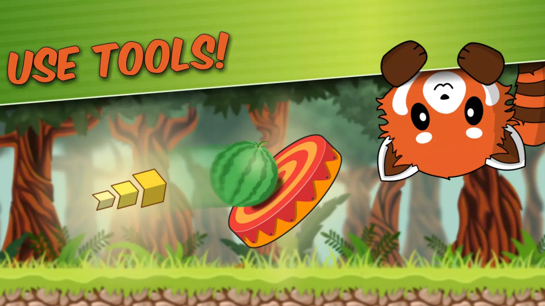 In Pit, you'll embark on a thrilling adventure through different puzzle worlds, each filled with numerous levels. The goal? To feed the adorable red panda with fruits and vegetables like watermelons! However, achieving this isn't straightforward. You'll face challenging obstacles and tricky hurdles such as wooden crates, stone blocks, and spiked tree trunks. Your task is to use your logic and creativity to find multiple solutions within each level.