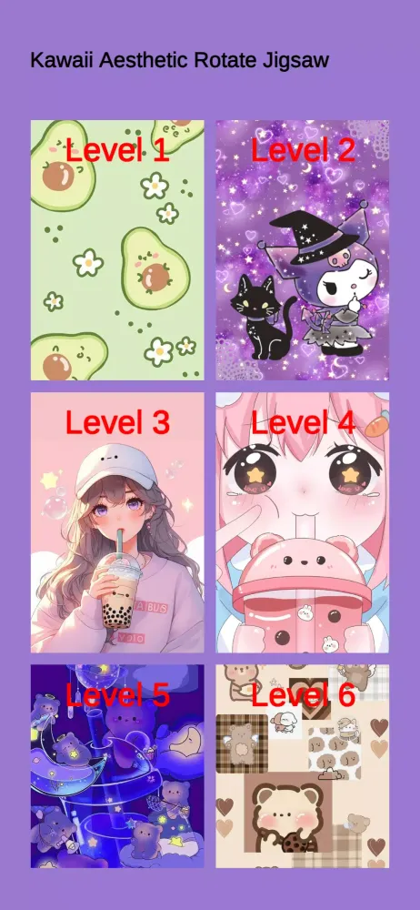 In essence, this app isn't just about solving puzzles; it's about creating moments of relaxation and joy. With its charming visuals, intuitive controls, and satisfying gameplay, Kawaii Aesthetic Rotate Jigsaw is more than just a game—it’s a delightful journey into a world where aesthetics meet fun. So why wait? Download the app today and embark on a colorful adventure filled with relaxation, creativity, and endless charm!