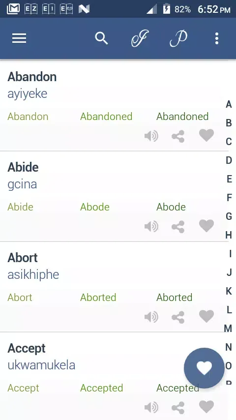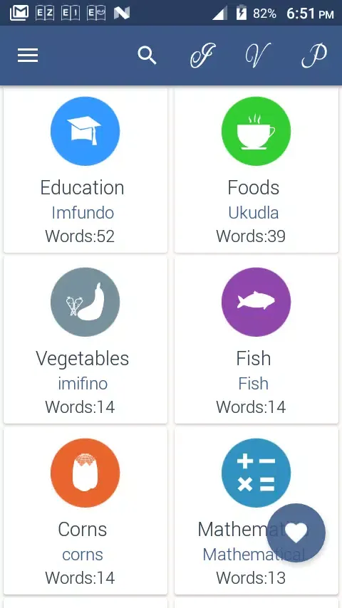 The app organizes the vast array of verbs into distinct categories, making it easier for users to navigate and focus on specific areas of interest or difficulty. Each category is curated to cover a wide range of topics, ensuring that learners can build a robust vocabulary base. Furthermore, Verb Zulu offers a "favorite" feature that allows users to mark and revisit important words, aiding in efficient and effective studying. By focusing on key terms, learners can reinforce their understanding and retention of essential vocabulary.
