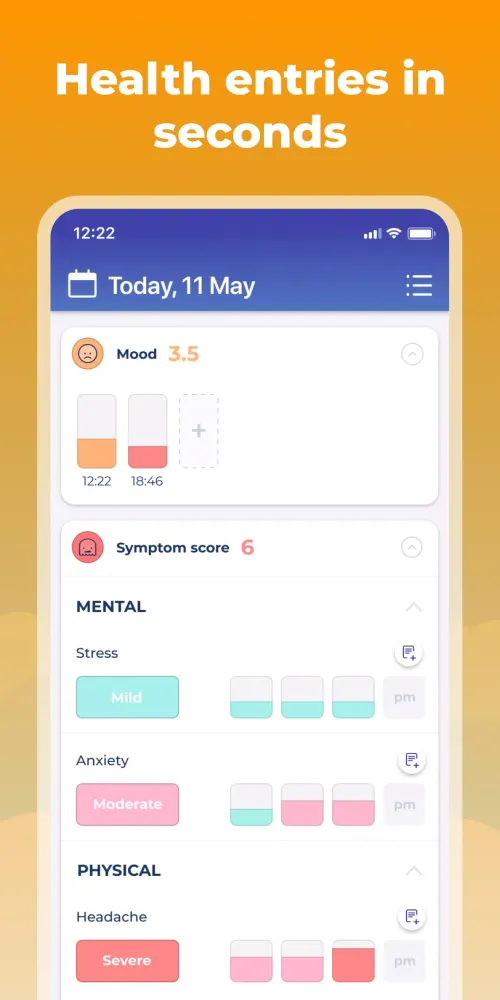 Bearable is designed to help you regain control over your well-being by simplifying the process of tracking your mood and symptoms. Making entries into our symptom and mood tracker is effortless, allowing you to focus on feeling better.