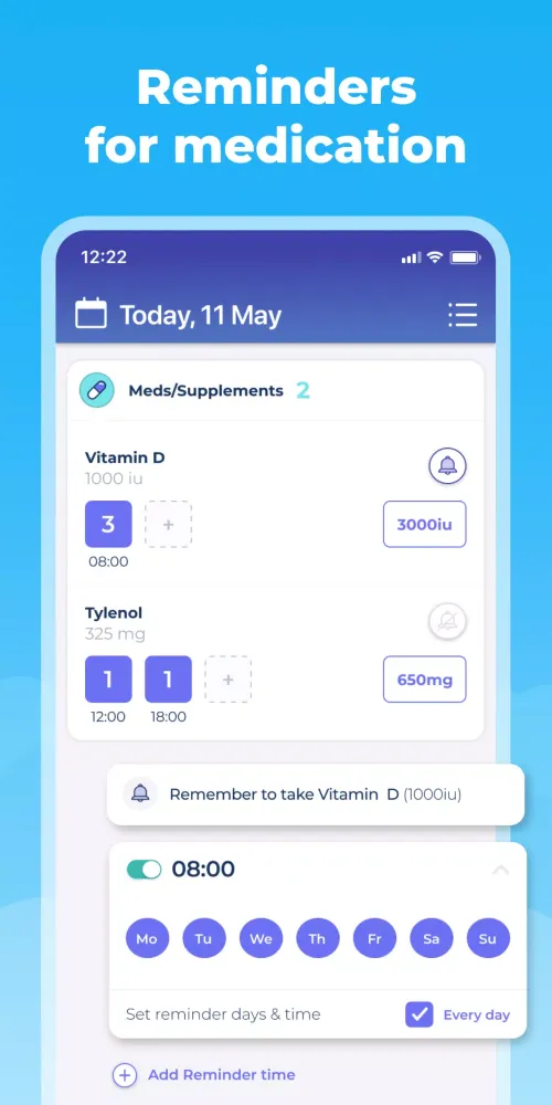 Stay Accountable for Self-Care Habits: Find out what works best for you and use optional reminders and goals to stay consistent with your self-care routine and medication schedule.