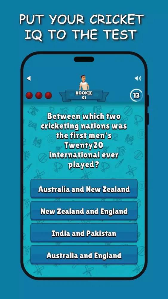 Real Cricket Quiz offers a comprehensive and thrilling experience where you can test your cricket knowledge across various formats. Whether you're a fan of the classic Test Cricket, the fast-paced T20 Cricket, the strategic One-Day Cricket, or even the rising Women's Cricket, this app has got you covered. Each format presents unique challenges that will put your expertise to the ultimate test.
