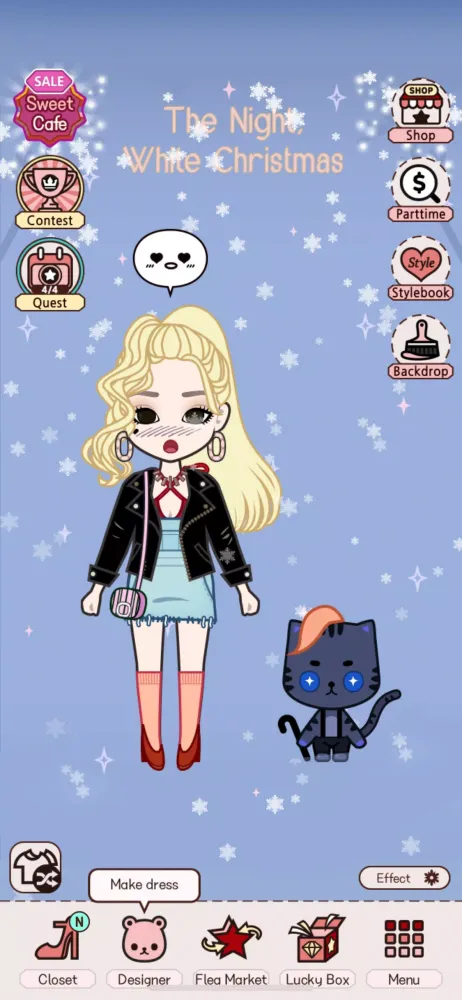 The fashion world is bustling with excitement as the opening ceremony for the Fashion School is underway. Trendy individuals are everywhere, setting the stage for an unforgettable experience. Amidst this vibrant atmosphere, a mysterious cat appears before you. With a purr, it says, "I can make you a style queen." Intrigued and excited, you follow the cat into a magical wardrobe, where you're greeted by more friendly creatures eager to assist you.