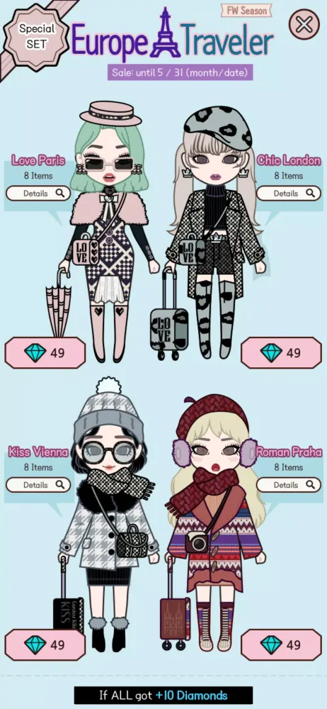 Dress up your character, add some dazzling decorations, and give them a glamorous makeover. With Style Queen, you can also collect adorable mini characters!