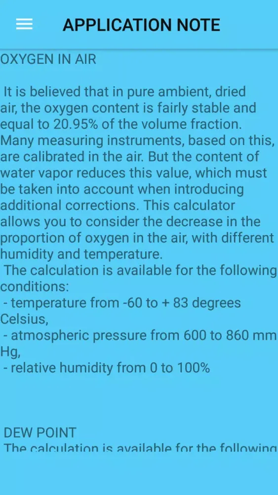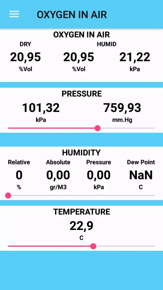 In addition to calculating the oxygen content, the application also computes the dew point and the absolute humidity of the air. These additional metrics provide a comprehensive view of the atmospheric conditions being analyzed. Whether you're studying weather patterns, conducting experiments, or simply curious about your local environment, these features offer valuable insights.