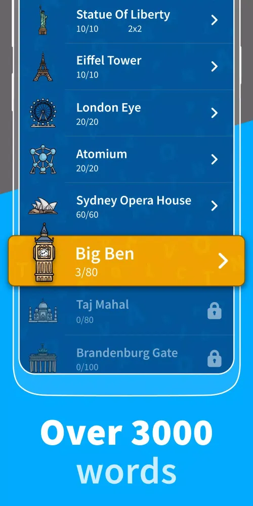 The game features more than 35 unique themes, ensuring there’s always something new to explore. Whether you're into historical trivia, pop culture, or science, this app has it all. Each theme comes packed with numerous levels, providing endless opportunities for discovery and learning. As you progress through the game, you'll encounter increasingly challenging puzzles designed to keep you entertained and engaged. With its smooth art design and intuitive user interface, "Word Game - Find the Words" offers a seamless gaming experience that keeps you coming back for more.