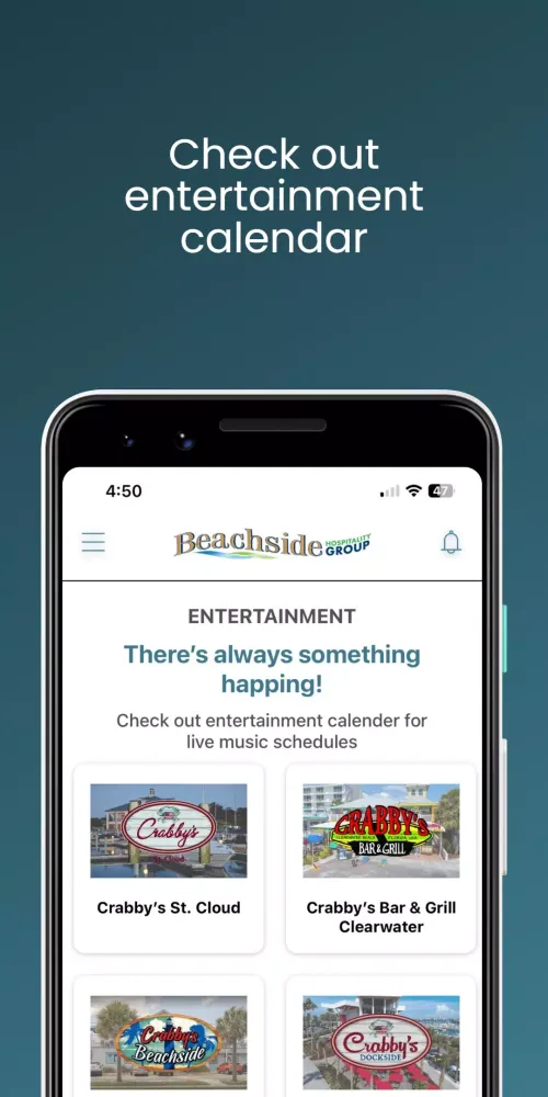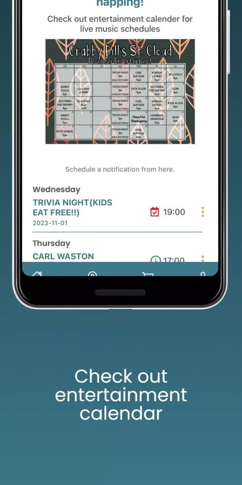 Stay updated with our vibrant entertainment calendar, which includes upcoming events, live performances, and more. Our app ensures that you never miss out on the latest happenings at any of our locations. Additionally, you can purchase gift cards conveniently within the app, making it the perfect choice for gifting unforgettable dining experiences to your loved ones.