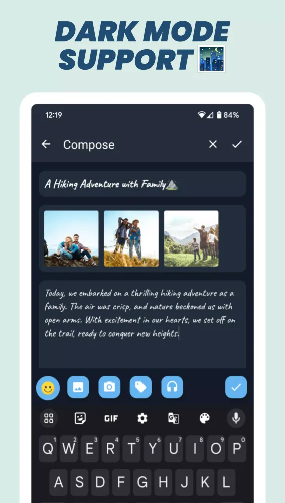 - Night Theme: Write comfortably in low light.