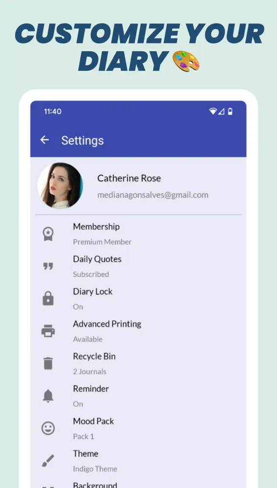 - Theme & Background Customization: Tailor the look of your diary.