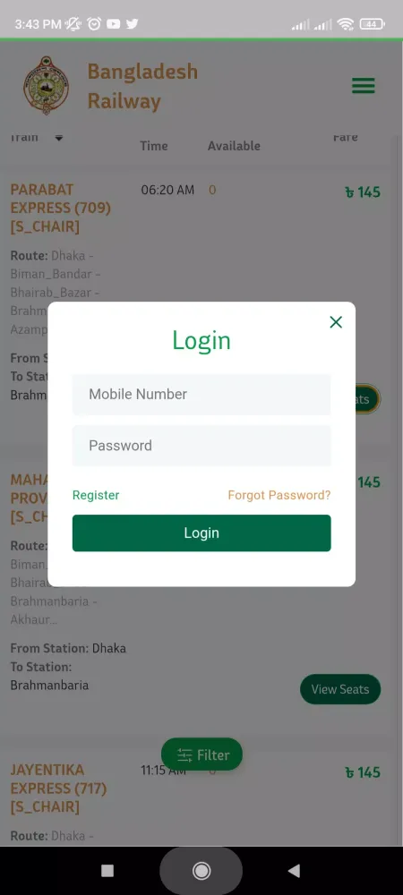 E-Rail Sheba BD is a cutting-edge mobile application designed to revolutionize the way you travel with Bangladesh Railway. Whether you're a frequent traveler or planning your first journey, this app simplifies the entire ticket booking process, making it faster and more convenient than ever before. Built on Bangladesh Railway's Centrally Computerized Seat Reservation & Ticketing System (CCSRTS), E-Rail Sheba BD ensures that every ticket issued is legitimate and securely processed through their official system.