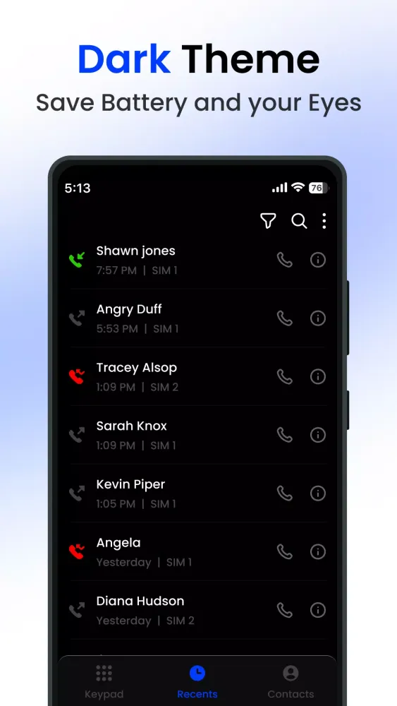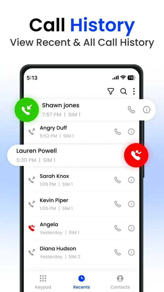 - Phone Dialpad: Check recent call logs to keep track of your most recent conversations.