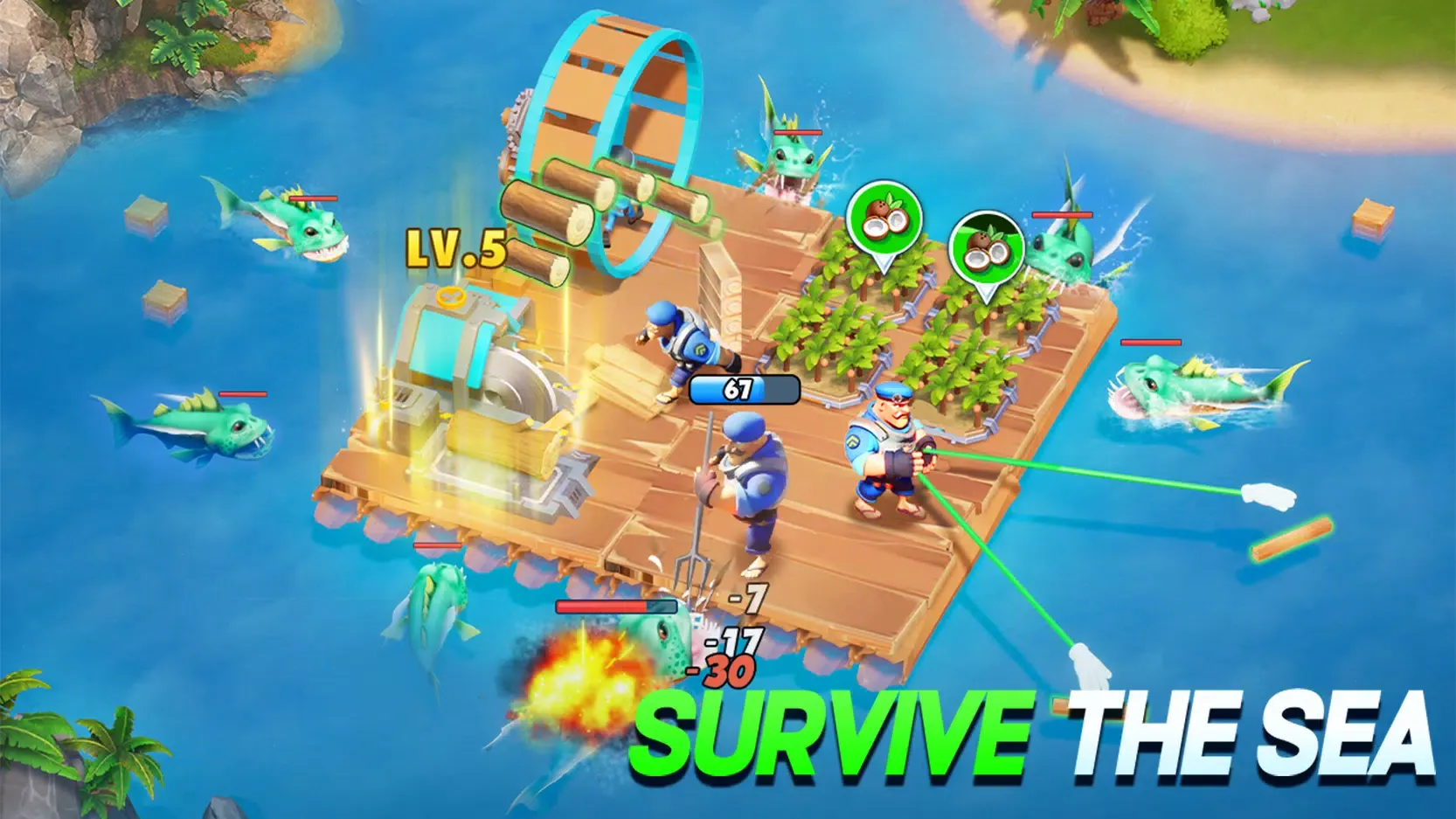 Construct formidable sea forts and establish alliances with other survivors to form a powerful coalition. Hunt down evil forces together and contribute to the downfall of massive fortresses. By coordinating with other sea forces, you'll not only grow your territory but also enhance your strategic capabilities.