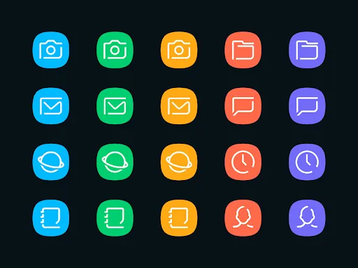 Delux is a pack of line icons with a rounded square background, it is based on the icons of Galaxy devices