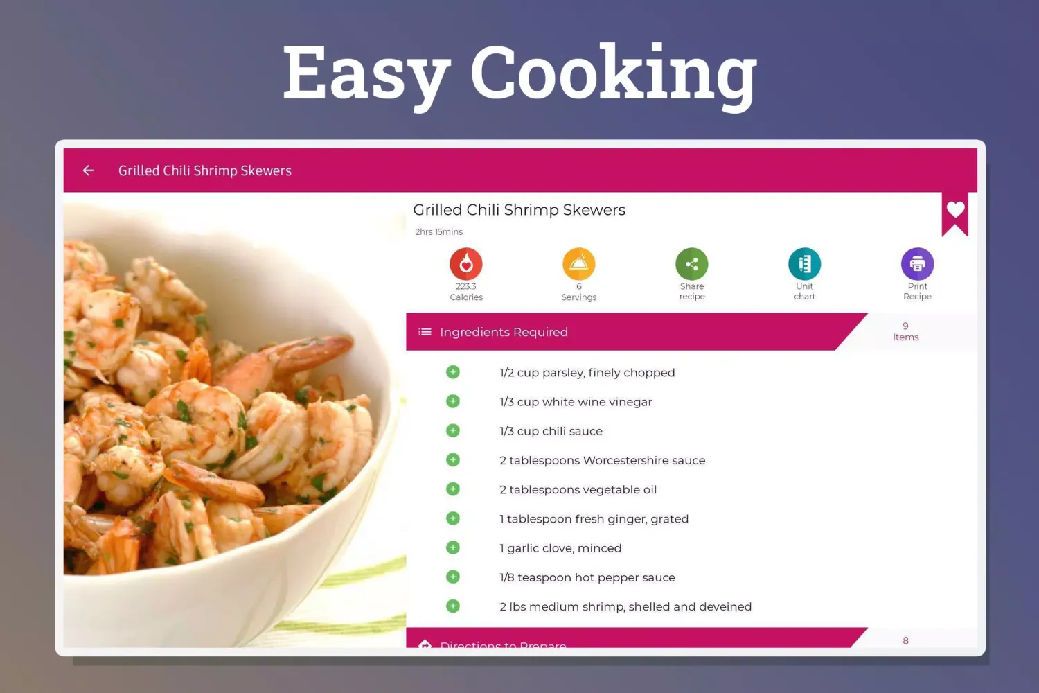 With the Shrimp Recipes app, you can search and access millions of shrimp recipes in the most convenient way possible. Learn about all the ingredients and follow a step-by-step procedure to create delicious dishes right at home.
