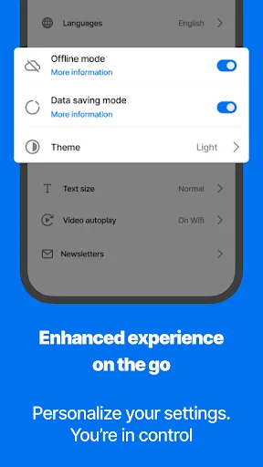 • The data savings feature: choose if you want pictures, enriched stories or simply a text raw version