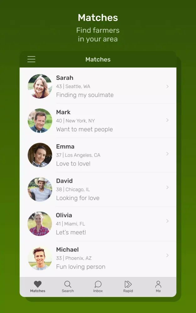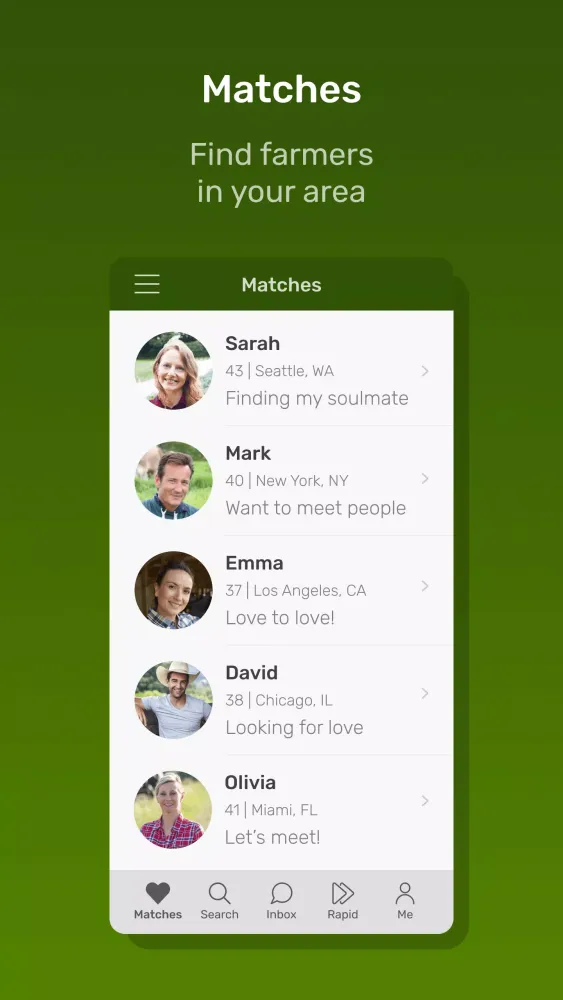 - Rapid Match: Swipe left or right to quickly browse through farmer profiles.