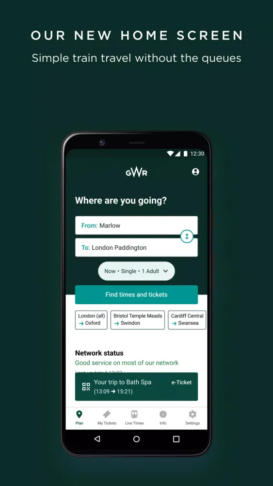 Another key advantage of the app is its integration with the GWR network. Live updates from the network are displayed on the home screen, keeping you informed about any changes or disruptions. This proactive approach ensures you remain aware of any developments that might affect your journey. Whether you're traveling locally or planning a cross-country trip, the app provides a seamless experience that keeps you connected to your itinerary.
