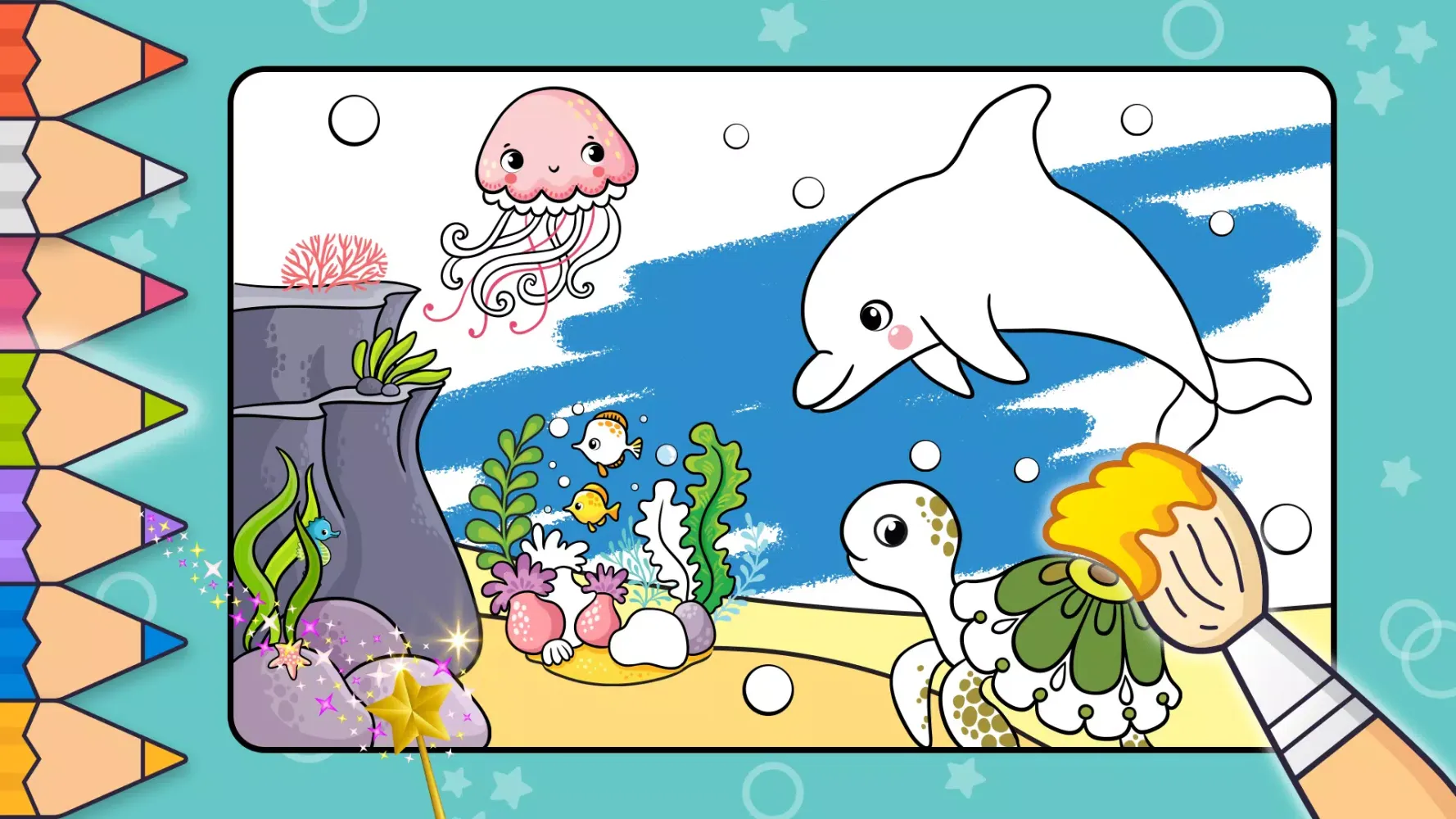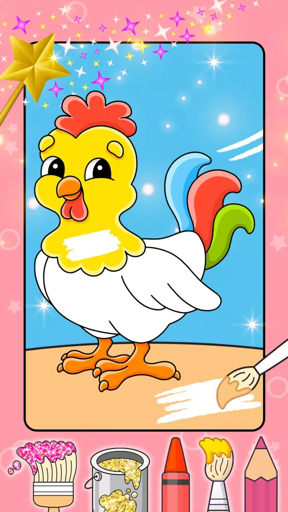 The app features over 60 high-quality images of various animals, including lions, tigers, elephants, parrots, horses, dogs, and more. These detailed illustrations are perfect for kids to explore, color, and bring to life. Whether your child is interested in farm animals, wild creatures, sea life, or birds, there’s something for everyone in this diverse collection.