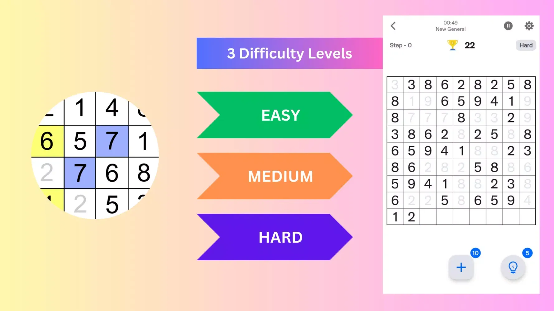- Three Levels: Choose from Easy, Medium, and Hard modes to suit your skill level.
