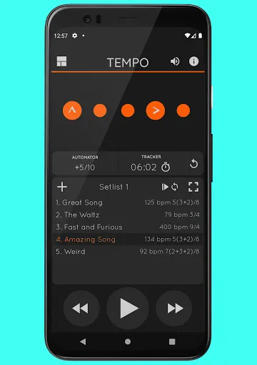 Tempo gives you the features you need without sacrificing usability. Its engine is written from the ground up for high accuracy and stability. Over that is wrapped an attractive and comprehensive single-screen interface. Flashing LEDs also serve as buttons to customize beats, enabling the creation of complex rhythms. Save your configurations as songs in setlists and share them with friends, including those using iOS devices.