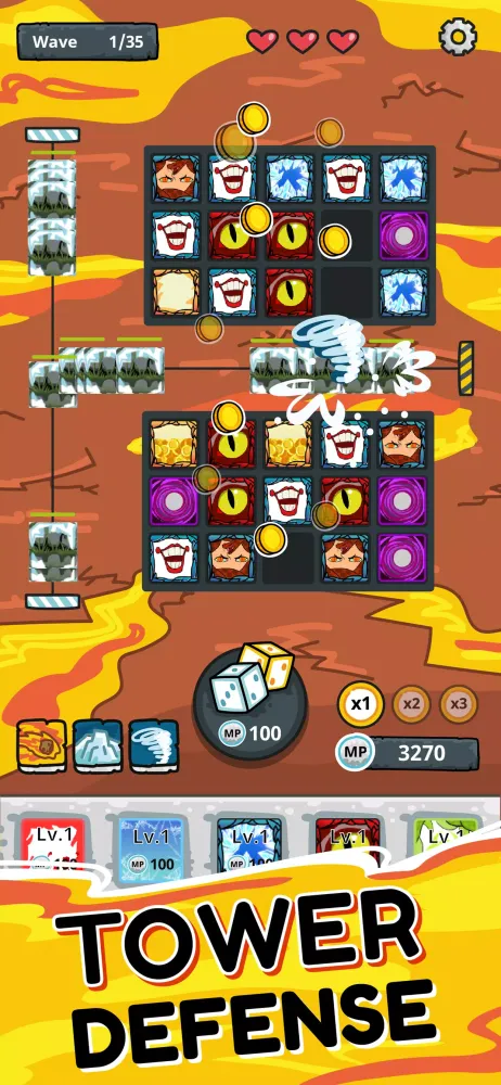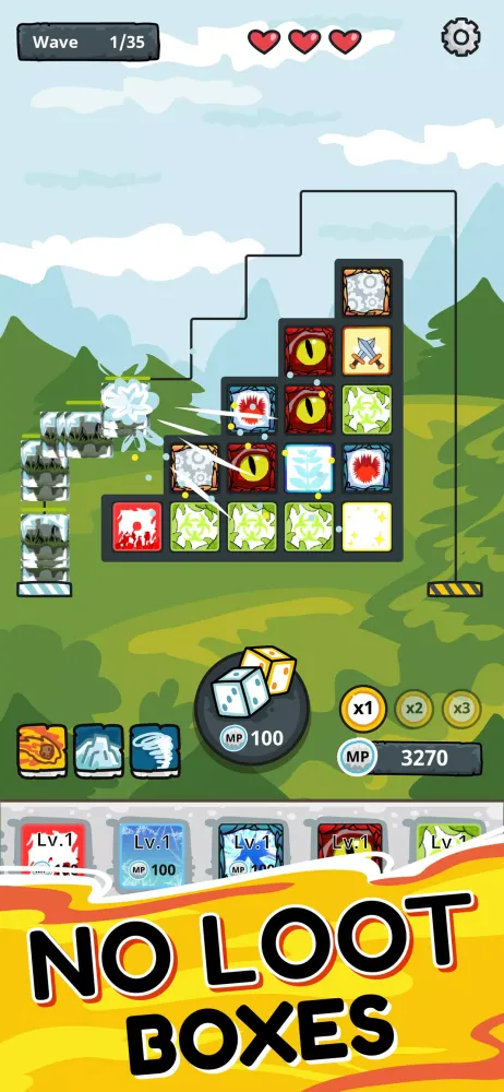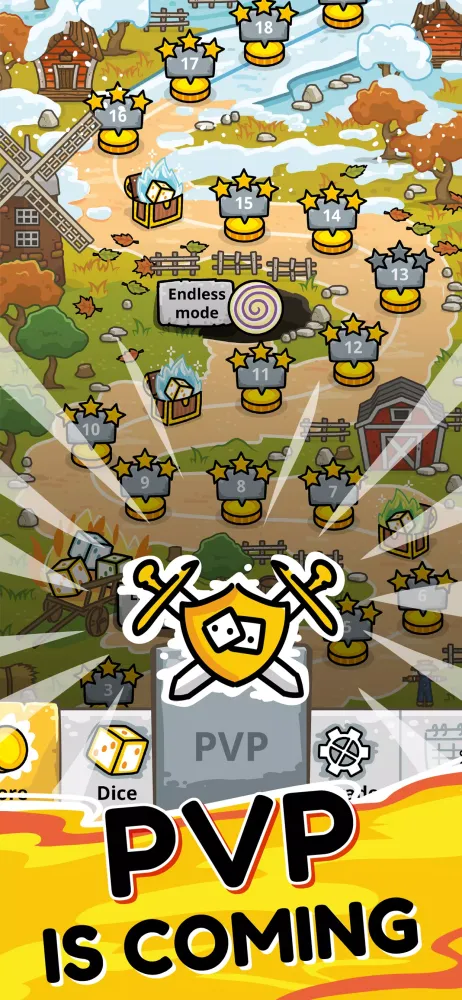 The game features 30 unique dice, and new additions are frequently introduced. As you progress through the 50-player-versus-environment (PVE) levels, each challenge becomes increasingly difficult, requiring careful planning and strategic merges to optimize your dice阵容