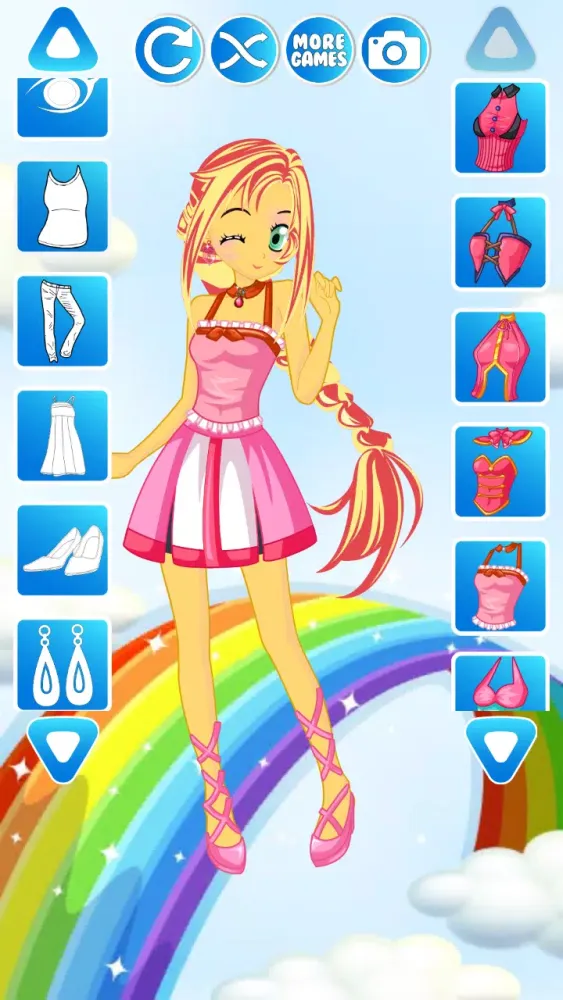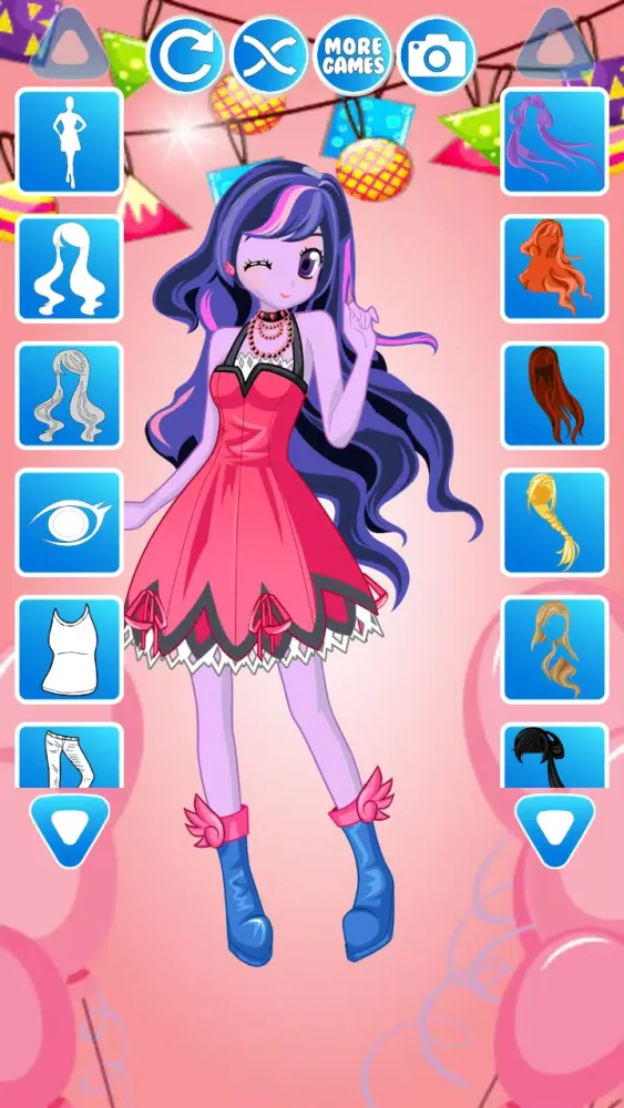 In this exciting dress-up game designed specifically for girls, players are invited to help the pony girl find the perfect outfit for her big day. The game offers a variety of options, from elegant gowns to casual outfits. You can choose a stylish gown adorned with intricate details, a longer strapless dress featuring a large bow at the top and a flowing train at the bottom, paired with either a short black skirt or a more elaborate skirt with corsets, ruffles, and bows.