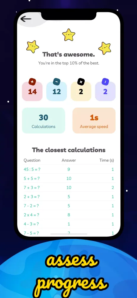 The game includes a 2 Player Mode that allows you to engage with your child or friend, making learning math a fun and competitive activity. Each round consists of 10 math questions, helping you assess and improve your child’s mental math abilities. This mode also makes learning more exciting and enjoyable.