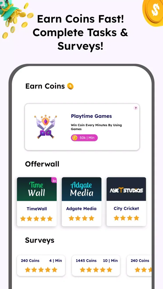 Complete quick surveys within the app to earn cash rewards and cryptocurrencies. Your feedback is invaluable, and we appreciate your participation in surveys from renowned companies. 📝 By sharing your thoughts, you help shape the future of gaming and earn valuable rewards in return. 🗣️