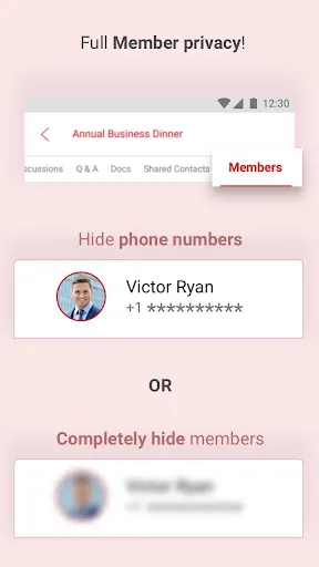 Dome allow unlimited members. Unlike chat apps, phone numbers of these members are private and not shared with each other.