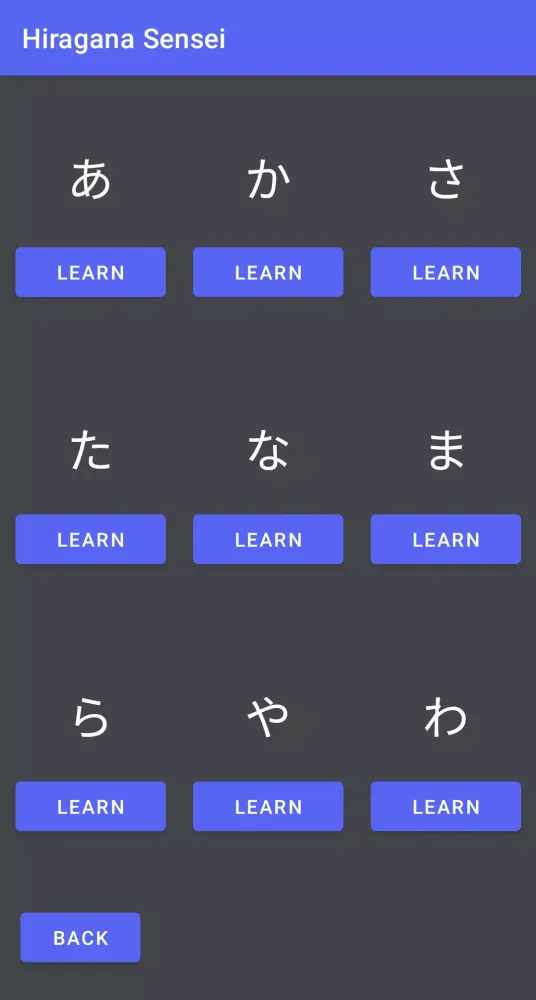 The app employs a straightforward and structured approach. It introduces you to hiragana in manageable batches of five characters at a time. This method ensures that you build a solid foundation and gradually develop confidence in recognizing and reading each character. As you progress through the lessons, you'll find yourself increasingly comfortable with hiragana, making the transition smoother and more enjoyable.