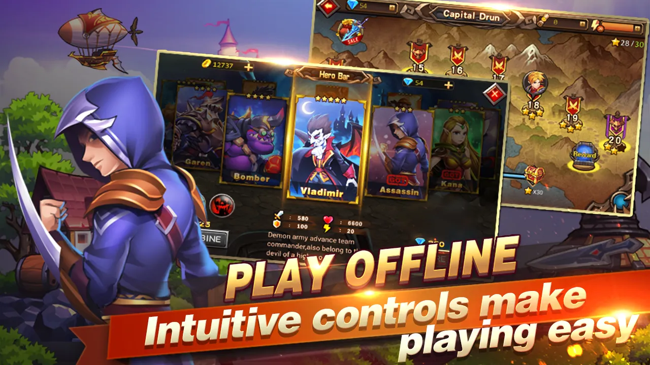 -You play as a young hunter. The story start in a battle between Terran and demons... Become a truly Invincible knight and save this lost country!