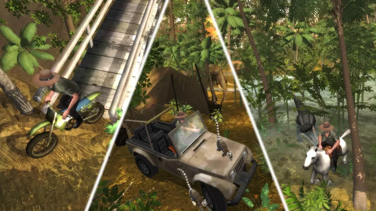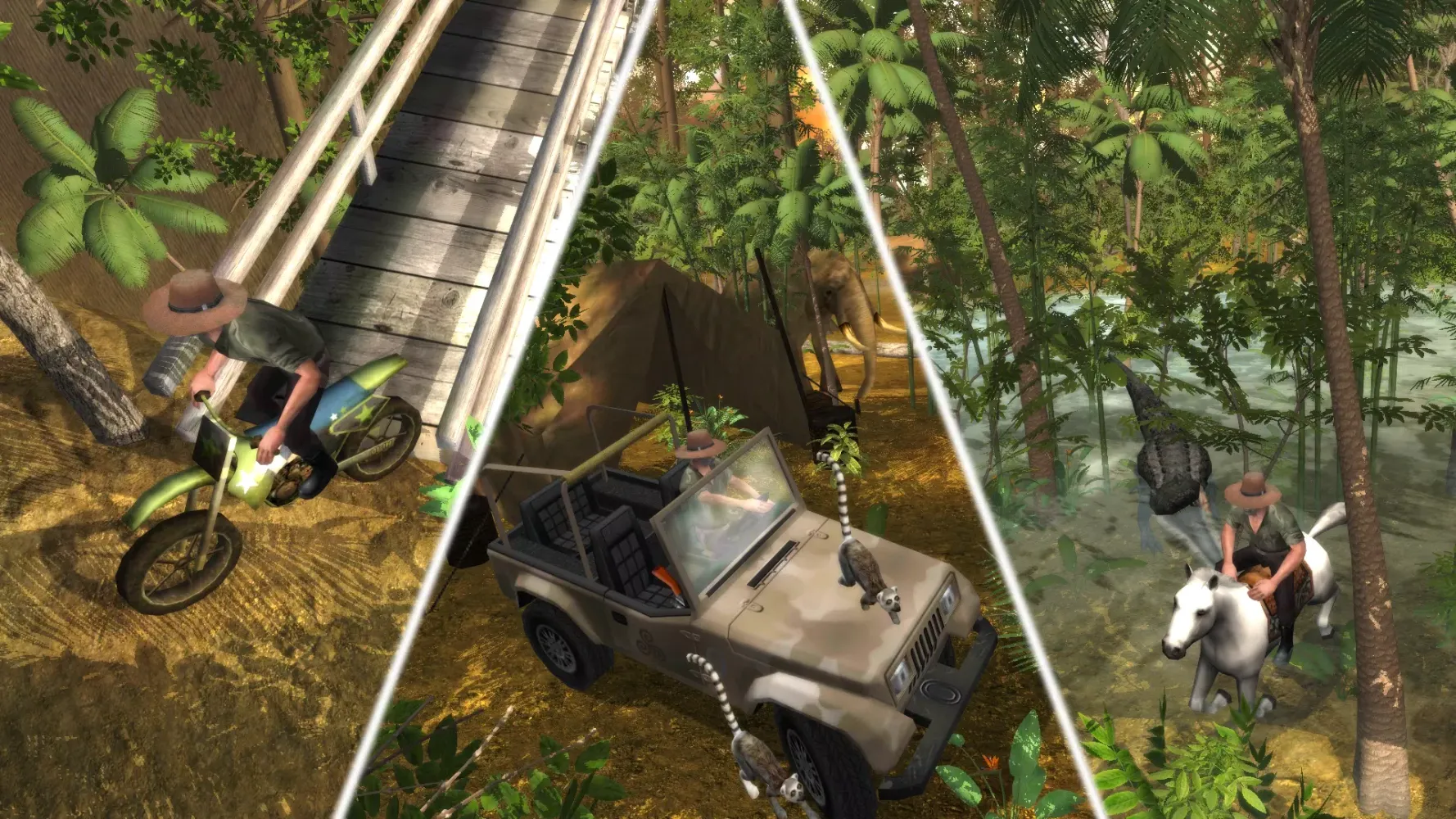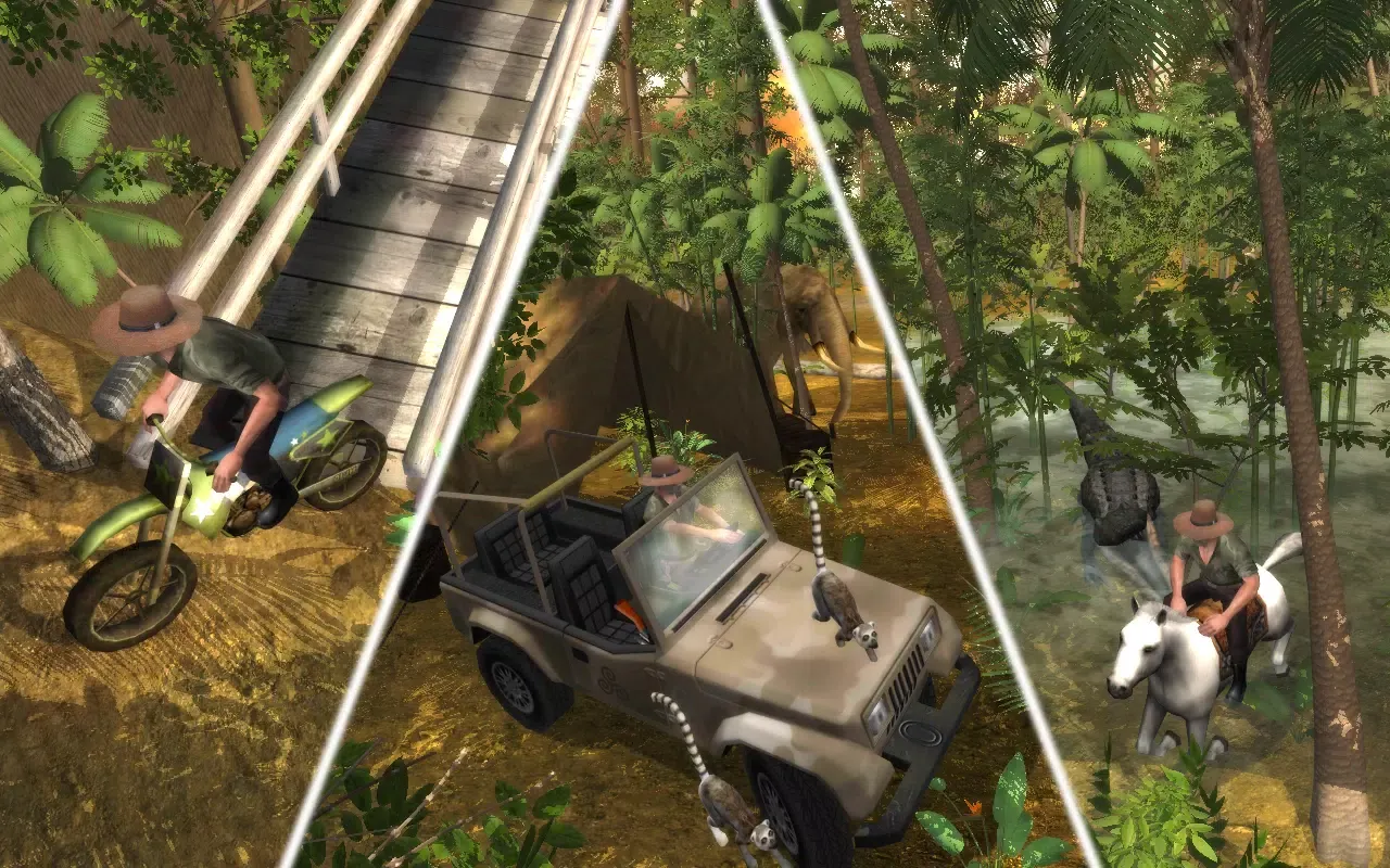 - Transportation: Move through the wilderness on foot, in a 4x4 off-road vehicle, motorbike, boat, or even ride a horse.