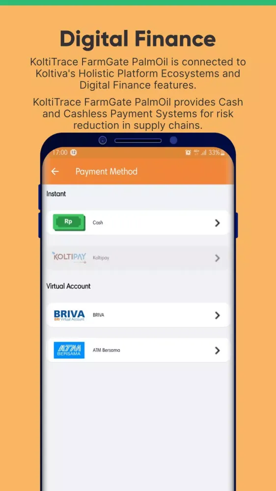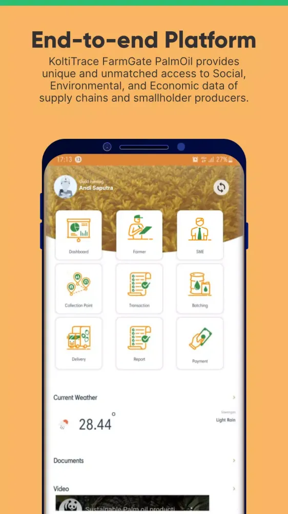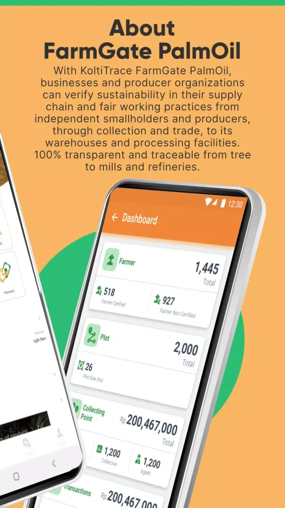FarmGate Palmoil, powered by Koltiva's PalmOilTrace, is a comprehensive web and mobile application designed to streamline and enhance the palm oil value chain. This platform combines product traceability, sustainability project management, and resource planning into a single, end-to-end ecosystem.
